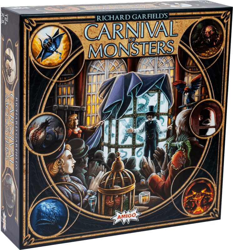 Richard Garfield’s Carnival of Monsters From the Inventor of Magic: The Gathering Can you build the most magnificent menagerie of monsters the realm has ever seen? Explore magical lands brimming with exotic beasts, and try to capture the most impressive specimens to win the top award for your carnival. But the monsters are not peaceful, so you will need to hire hunters to keep them from escaping before you can put them on display for your adoring public . . . and achieve your secret goals. This masterful card-collecting and set-building game from the inventor of Magic: The Gathering is loaded with beautifully-illustrated cards and brimming with strategy, all packed into a 45-minute play time.