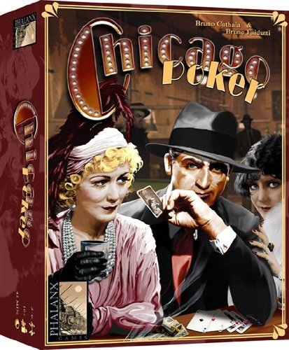 Details: Welcome to the roaring twenties! The players represent notorious gangster bosses in the heyday of organized crime in Chicago. They try to take control of the main legal and illegal sources of profit - speakeasies, gambling houses, jazz clubs, and breweries/distilleries. In order to achieve this, each player sends his gangsters to intimidate the owners of these businesses. Most of the businesses even change ownership at the gambling table! The first player to either take control 3 businesses of the same kind, 4 different businesses or any 5 businesses, is the winner in Chicago Poker! Contains: 20 Hexagonal Business tiles 87 cards 4 shootout markers Rules
