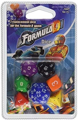 Details: Product Description Dice for Formula D Replacement dice for the game Formula DWorks with the original game and all expansionsAlways have a spareDue to popular demand from Formula D fans, Asmodee will now be offering replacement dice for Formula D. Are you tired of searching for your green fourth gear die? Do your friends always throw the sixth gear dice way too far from you? Also what about the third gear red die that you saw last about 8 months ago when one of your friends hit a homerun with it, just because he thought you made a voodoo call and that was why he missed the last turn. Or do you simply lose a die because (add your story: child lost it, dog ate it, an alien took it, someone stole the fifth gear to play D&D. So, no matter what the reason get these dices to play with on your favorite Formula D track. From the Manufacturer Due to popular demand from Formula D fans, Asmodee will now be offering replacement dice for Formula D. Are you tired of searching for your green fourth gear die? Do your friends always throw the sixth gear dice way too far from you? Also what about the third gear red die that you saw last about 8 months ago when one of your friends hit a homerun with it, just because he thought you made a voodoo call and that was why he missed the last turn. Or do you simply lose a die because (add your story: child lost it, dog ate it, an alien took it, someone stole the fifth gear to play D&D. So, no matter what the reason get these dices to play with on your favorite Formula D track.