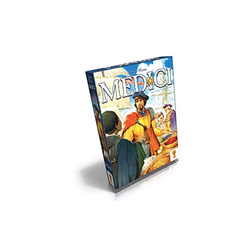 Details: Medici is an auction game for 2-6 players. Over three rounds, players will buy and load goods onto their ships before receiving money for the value of their holds. But be careful, the money you use to bid at auctions is also your end game points. Medici is an interactive game that is quick to learn and engaging to play. This all-new english language edition provides players with a stunning new production of this classic game by reiner knizia, and artwork by vincent dutrait. Content 36 Cards, 36 wooden scoring markers, 5 commodity markers, 3 day markers, 8 player mats, 1 game board, 1 rule book Specifications Ages: 10+ Players: 6-Feb Play Time: 30 - 60 minutes Weight: 2.27 lbs