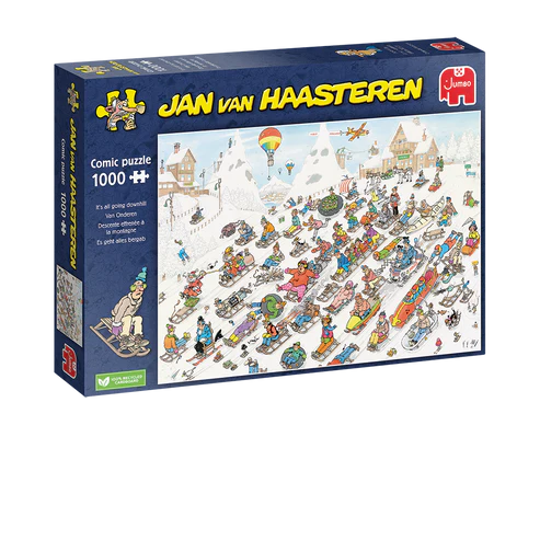 A Jan van Haasteren puzzle is so much more than just a puzzle, it’s an adventure series with familiar characters playing the lead roles in a never-ending decor full of absurd details. Discover the crazy adventures of the Jan van Haasteren family! 1000 pcs Puzzle dimension: 49 x 68 cm