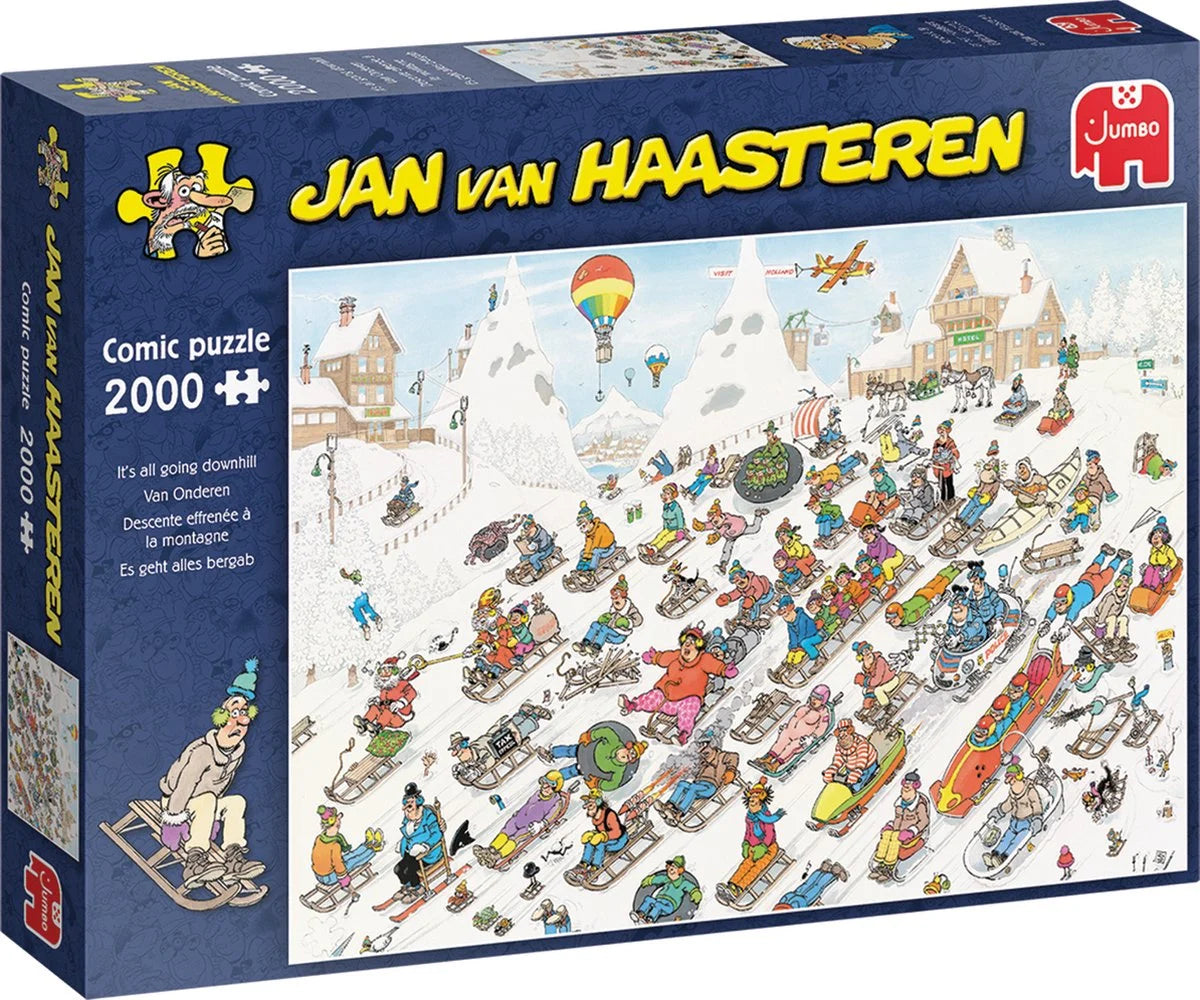 A Jan van Haasteren puzzle is so much more than just a puzzle, it’s an adventure series with familiar characters playing the lead roles in a never-ending decor full of absurd details. Discover the crazy adventures of the Jan van Haasteren family! 1000 pcs Puzzle dimension: 49 x 68 cm