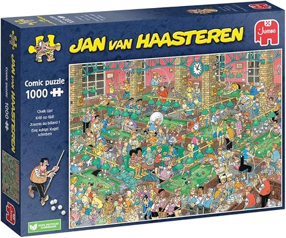 A Jan van Haasteren puzzle is so much more than just a puzzle, it’s an adventure series with familiar characters playing the lead roles in a never-ending decor full of absurd details. Discover the crazy adventures of the Jan van Haasteren family! 1000 pcs Puzzle dimension: 49 x 68 cm