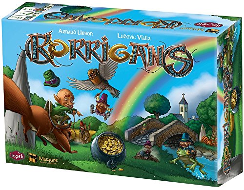 Details: The legends of Brittan claim that a cauldron full of gold appears at the foot of each rainbow, and that tribes of Korrigans (similar to leprechauns) are competing to be the first to find it. In Korrigans, each player controls a tribe of Korrigans, scouring fields to pick up four-leaf clovers. Clovers either give Korrigan gold coins or attract companions (hares, squirrels, birds, mice, frogs, and moles) that will help their Korrigan friends move from field-to-field in different ways.
