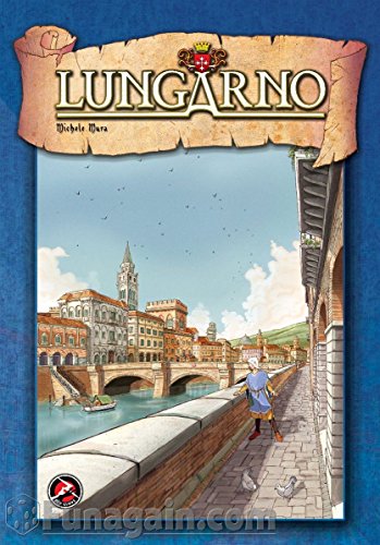 Details: Lungarno? includes a special board, 64 building tiles, 8 influence tokens, 25 merchant pawns, 55 coins, and an illustrated rulebook. Gold rules over all! In fourteenth century Pisa, the great families are the key to success, wealth, and power. Merchants compete to make deals with the most prestigious families, while master builders erect splendid palaces, tower houses, plazas, and more to impress the great families. The center of this quest for wealth and power is the Lungarno district, along the banks of the river Arno. Can you overcome your rivals and dominate Lungarno? Your goals require not only clever tile play, but also wise use of your limited resources. You must send your merchants to trade with the most prestigious families. When a district is complete, your merchants earn profits. At the end, the most profitable player is the master of Lungarno and wins the game!