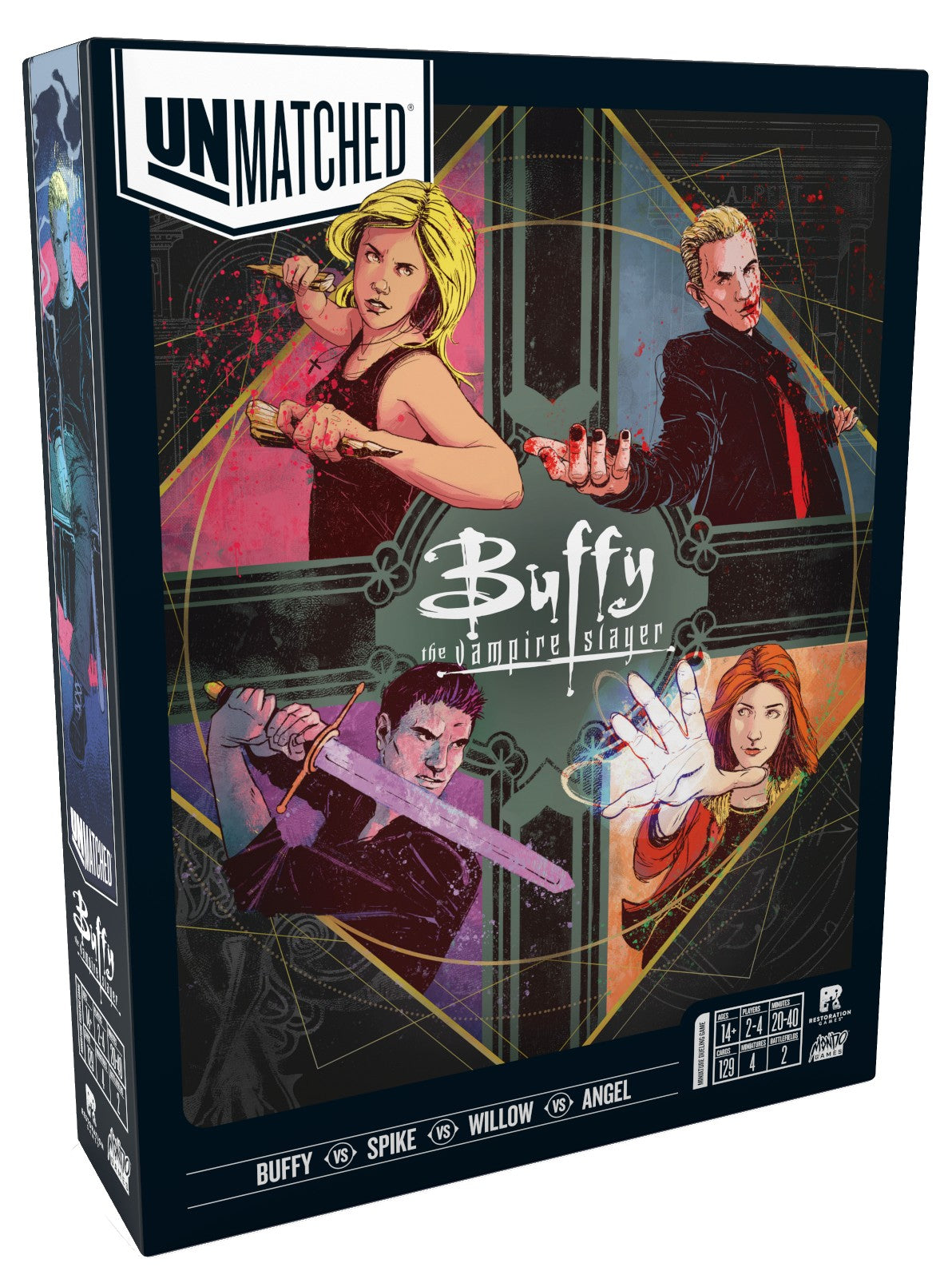 Unmatched: Buffy the Vampire Slayer features four heroes. Buffy will hit you with Mr. Pointy or summon her Slayer’s strength for a cartwheel kick. When it’s time for backup, she’ll take her pick between insightful Giles or reliable Xander. Spike, a relentless hunter, seeks the shadows and calls on Drusilla’s Sight to let him know just where and when to strike. Willow, a peerless witch, dabbles in black magic and risks her darker self, potent but dangerous. At times, only Tara can bring her back from the brink of the abyss. Angel, once the Scourge of Europe, is cursed with a soul, conflicted by his victories and taking solace in his losses. Faith is there to make sure things stay “Five by Five”.
