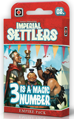 Imperial Settlers: 3 Is a Magic Number, the second Empire Pack for Imperial Settlers, introduces a new rule: SET. This new ability allows players to score and trigger new effects each time they build three cards in a particular color. With this rule, the drafting phase and the choice of the "right" card to draft becomes even more interesting.