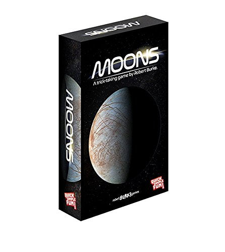 Details: Moons is the latest fun and exciting trick-taking card game from game designer Robert Burke. Planets throughout our solar system feature well known and not-so-well known bodies orbiting them. Moons is perfect for those who not only want a fun game but may be interested in learning more about our universe in the process. Featuring vibrant artwork of celestial bodies, sturdy moon tokens to keep track of your progress, and easy to learn rules, Moons is fun for all ages. Use your smarts, cunning, and planning to weave your way through the moons of our solar system and take down your opponents in true out-of-this-world fashion.