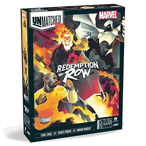 Details: Unmatched Battle Breaks Out on the Raft!When it comes to Unmatched ... Make Mine Marvel! Unmatched is thecritically acclaimed, best-selling game of tactical combat between unlikely opponents. Redemption Row brings three of Marvel’s most tortured heroes into the arena. Moon Knight shifts through three identities, leveraging the power of each. Ghost Rider channels Hellfire to further fuel his deck. When you come at Luke Cage, you best pack a punch if you hope to get through his titanium-like skin. They’ll duke it out on the Raft battle map, featuring item tokens that provide fighters with potent effects.As with every Unmatched set, these heroes can face off against fighters from other sets, making it a must-have for experienced players or a great entry point for new ones. And it’s all brought to life by the masterful illustration of Matt Taylor and Ian O’Toole with the peerless production quality for which the Unmatched line is known.